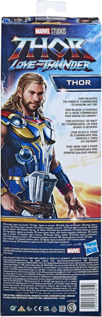 Thor unleashes the power of Stormbreaker to overcome any foe! Unleash the power of the Marvel Universe with the Marvel Avengers Titan Hero Series Thor: Love and Thunder Thor action figure! Kids ages 4 and up can imagine mighty action and adventure with this 12-inch-scale action figure, inspired by Thor: Love and Thunder, part of the Marvel Cinematic Universe. Featuring movie-inspired design and detail, as well as multiple points of articulation for poseable fun, boys and girls will love pretending to defend the universe with this large-scale Thor toy! Copyright 2022 MARVEL. Hasbro and all related terms are trademarks of Hasbro.