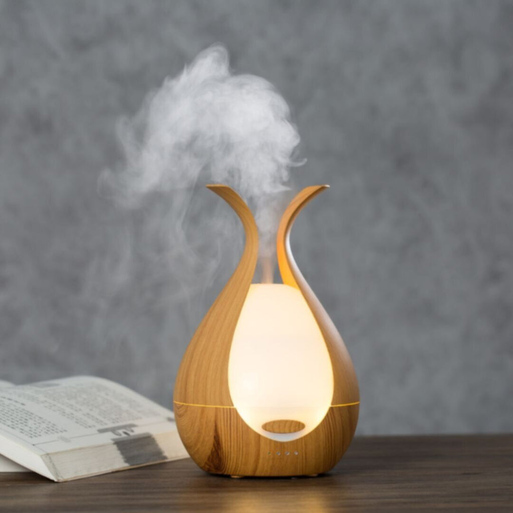 معطر جو بلون الجوز الفاتح، سعة 200 مل، مزود بـ 7 مصابيح LED ومحول قابس كهربائي بريطاني لإضفاء لمسة طبيعية | YD-033