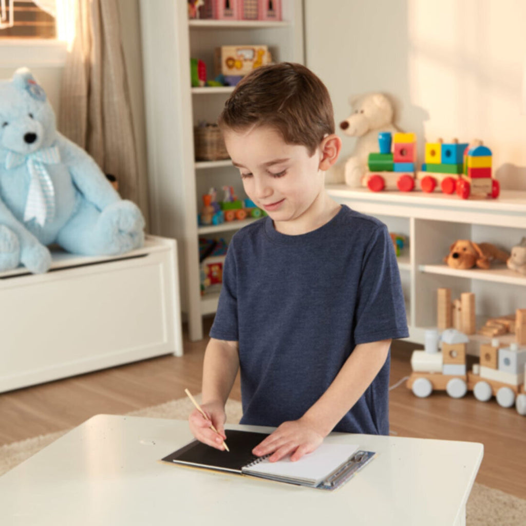 افتح دفتر الرسم، وارسم أو تتبع تصاميمك، وشاهد تأثيرات مذهلة تتألق! مع دفتر الرسم هذا ذي الغلاف الحلزوني بحجم الجيب، يُصبح من السهل على الأطفال اصطحاب فن الخدش أينما ذهبوا. يحتوي الدفتر على 8 صفحات فن خدش بخلفيات قوس قزح، و8 صفحات فن خدش بخلفيات فضية ثلاثية الأبعاد، وقلم خشبي صغير، وجيب للقلم في الغلاف. رقم منتج فن الخدش السابق: 3287