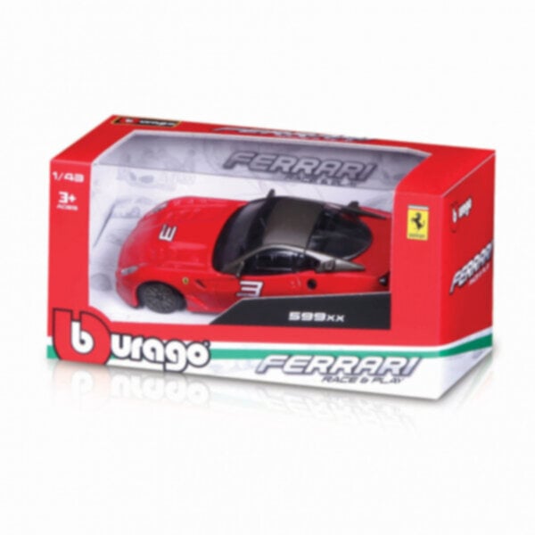 â—† Rosso Scuderia - Ferrari red! Almost half of the Ferraris sold today still come in the famous red livery of the Italian carmaker and represent power, motor sports, beautiful design and a whole lot of fun. Bburago has now produced die-cast metal models of the popular Ferrari racing cars, with great attention to detail and true to the original design. The Ferrari Race&Play models on a scale of 1:43, measuring approx. 10 cm in length and featuring free-wheeling, are suitable as a toy for children aged 3 years and over.