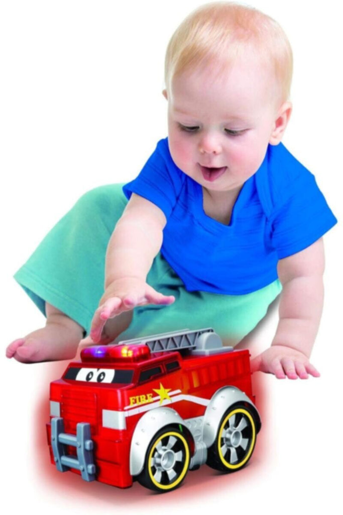 â—† Cute light up and sound fire truck built specifically for small children to enjoy. This vehicle almost looks like a cartoon character, complete with big eyes on the windscreen. Press down on the top and the sirens illuminate and make authentic emergency sounds. It comes in open "Try me" style packaging too that's sure to attract the attention of any passing customer. Part of the BB Junior range of toy cars, vehicles and playsets.