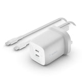 اشحن جهاز MacBook الخاص بك واشحن هاتف iPhone 13 بسرعة في نفس الوقت باستخدام شاحن جداري آمن وقوي وصغير الحجم للغاية بقدرة 65 واط بمنفذي USB-C بتقنية GaN مع تقنية PPS. يأتي مع كابل USB-C إلى USB-C.