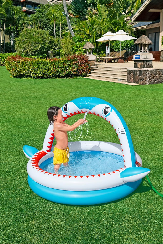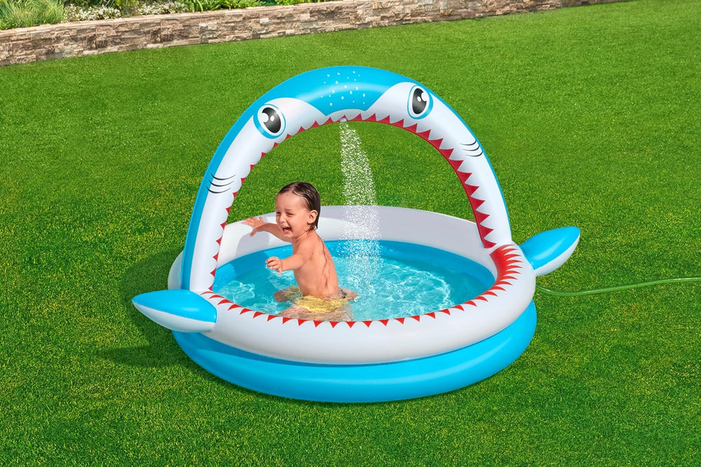 Make a splash this summer with the Bestway® Sharktastic Sprinkler Play Pool, designed to turn your backyard into an underwater adventure! Perfect for kids aged 2 and up, this exciting inflatable pool features vibrant shark graphics and a built-in archway sprinkler for nonstop water fun.