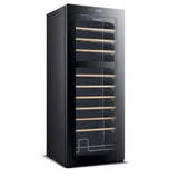 تتميز ثلاجة المشروبات القائمة بذاتها بباب أمامي زجاجي أنيق شفاف بمفصلة يسارية وإطار من الفولاذ المقاوم للصدأ، مما يتيح لك رؤية النبيذ أو البيرة أو المشروبات الغازية بنظرة سريعة. بفضل بابها الزجاجي المقوى والمحكم الإغلاق، والذي يساعد في الحفاظ على مستوى الرطوبة المثالي، توفر لك هذه الثلاجة تصميمًا عصريًا وصغير الحجم. إضاءة LED داخلية ناعمة باللون البنفسجي لا تُبرز جمال النبيذ فحسب، بل تحافظ عليه أيضًا. تأتي الثلاجة أسفل المنضدة بتصميم تخزين داخلي واسع، مزودة بخمسة أرفف كروم قابلة للتعديل والإزالة. يمكنك تعديل الرف القابل للإزالة ليناسب أي مجموعة من المشروبات. يستوعب منظم المشروبات ما يصل إلى 85 علبة من المشروبات الغازية أو البيرة (330 مل)، أو 24 زجاجة نبيذ (750 مل). يساعد الباب الزجاجي المزدوج على حجب الأشعة فوق البنفسجية الضارة والحفاظ على مستوى الرطوبة المثالي.