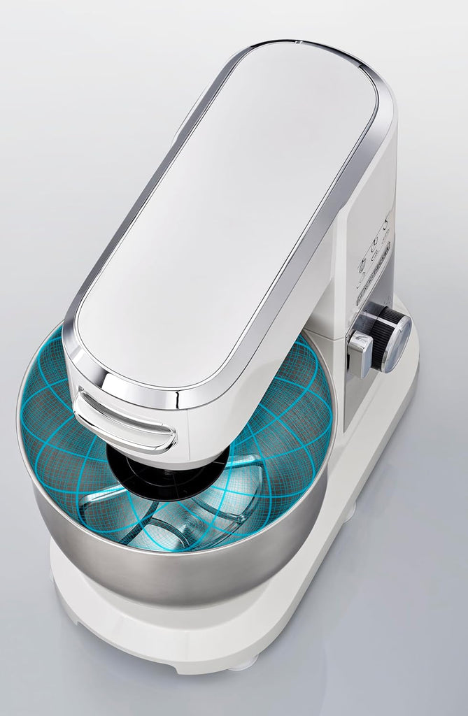 • محرك قوي بقدرة 1000 واط مزود بتروس نقل معدنية عالية العزم، يتعامل مع العجائن الثقيلة ومهام الخلط الصعبة.