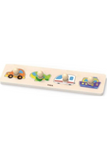 This peg puzzle from Viga features 4 different types of vehicles. The pegs are large and easy to grab for small hands. These puzzles are self-correcting which gives kids a chance to eventually arrive at the solution.