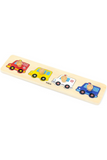 يتكون المنتج من 4 قطع تُطابق رسومات على قاعدة مستطيلة. على الطفل اختيار القطعة المناسبة من حيث الشكل واللون، ثم وضعها في مكانها على القاعدة. تتميز قطع الأحجية بمقابض كبيرة مريحة. المادة: خشب. صُنع المنتج من خشب عالي الجودة وأصباغ آمنة. جميع الحواف والتفاصيل مصقولة بعناية. يفي المنتج بمعايير السلامة والجودة.