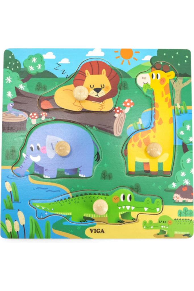 • مجموعة فيجا من الحيوانات الخشبية، 4 قطع، تتضمن مقابض كبيرة وأربع صور.