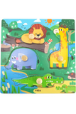 • ضع الحيوان في المكان الصحيح على السجادة. من خلال تجميع الأحجية، يمارس الأطفال المهارات الحركية الدقيقة وتقنية الإمساك. يوصى به للأطفال من عمر 18 شهرًا.
