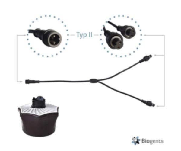 The Y-connector, Typ II, can be used to connect one power supply unit to two Biogents traps. Therefore, you only need one power supply unit to run two traps instead of two. To be used with the brown trap versions of the BG-Mosquitaire +/- CO2.