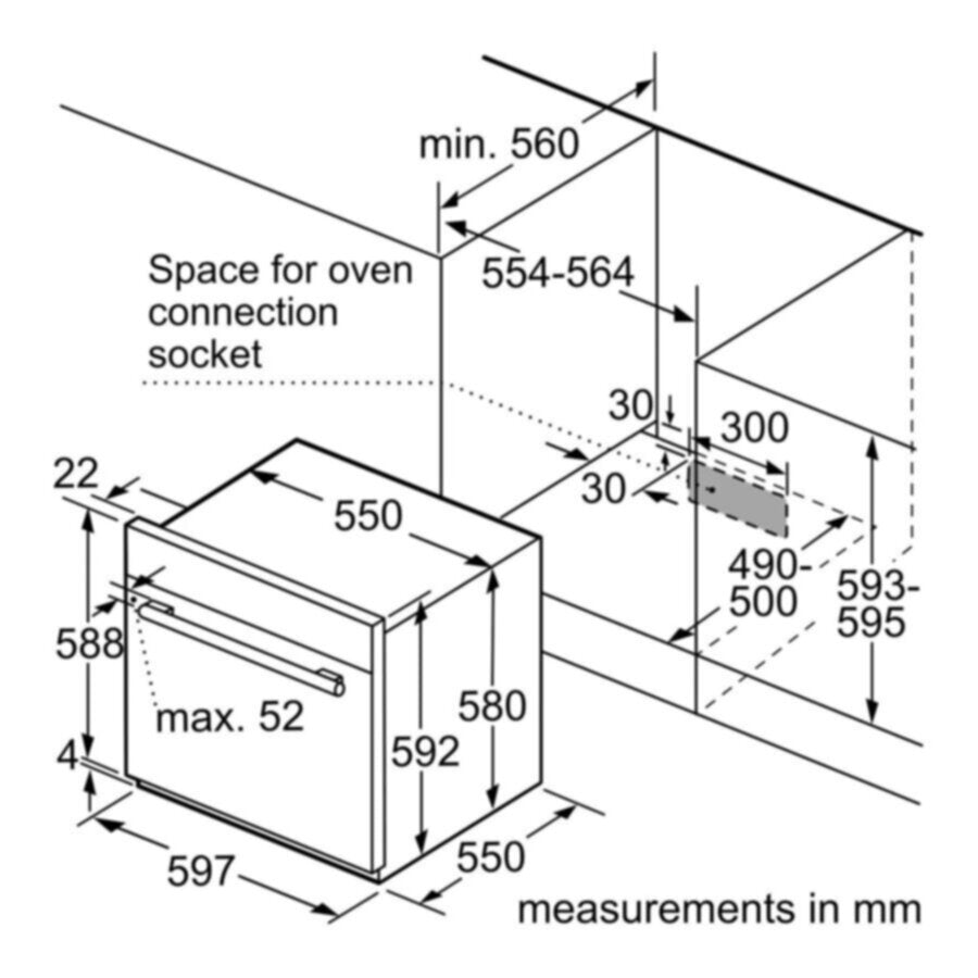 3 Operating methods: Full-surface grill/broiler, Max Rotisserie, Gas bottom heating Grill heating element: Gas2.2 KW Oven burner with Knob ignition Thermoelectric ignition for hob and oven Full glass inner door: Triple glass door Oven light Oven capacity60 l Preset of liquid gas (28-30/37mbar) Natural gas nozzles (20 mbar) included