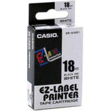 Casio 18mm White EZ Label Printer Tape XR-18WE1‎ Casio Label maker black on white tape measuring 18 mm is compatible with KL-100, KL-750, KL-7400, KL-7200 and is ideal for everyday labeling applications.