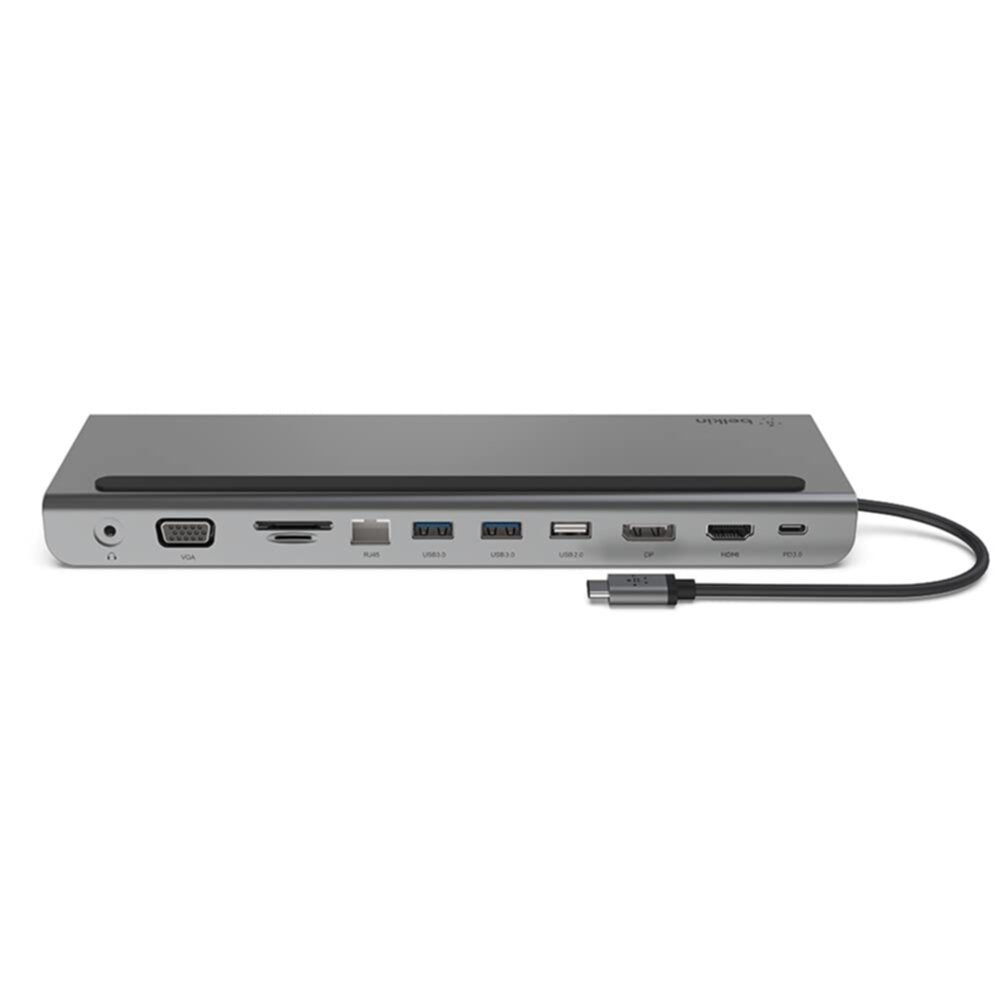 Create the ultimate workstation with our USB-C® 11-in-1 Multiport Dock. Our docking station supports pass-through charging so you can power up while connecting your laptop to multiple devices such as 4K monitors, SD cards, thumb drives, and much more.Turn your USB-C laptop into the ultimate workstation with our USB-C 11-in-1 Multiport Dock. This all-in-one solution gives you access to ports that newer laptops have eliminated in the recent years, allowing you to connect to monitors, SD cards, thumb drives, and more through its USB-C port. It supports pass-through charging up to 100W so you don’t have to choose between port expansion and power. This docking station gives you up to 5 Gbps of bandwidth between connected devices and your laptop while supporting high-definition display resolutions up to 4K through HDMI, DisplayPort, and VGA video ports. Plus, with its Gigabit Ethernet port, you’ll always have a safe and secure internet connection.