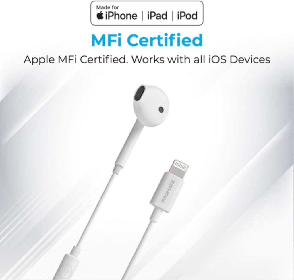 PROMATE | Mono Earphone with Lightning Connector for Iphone-Ipad-Ipod White