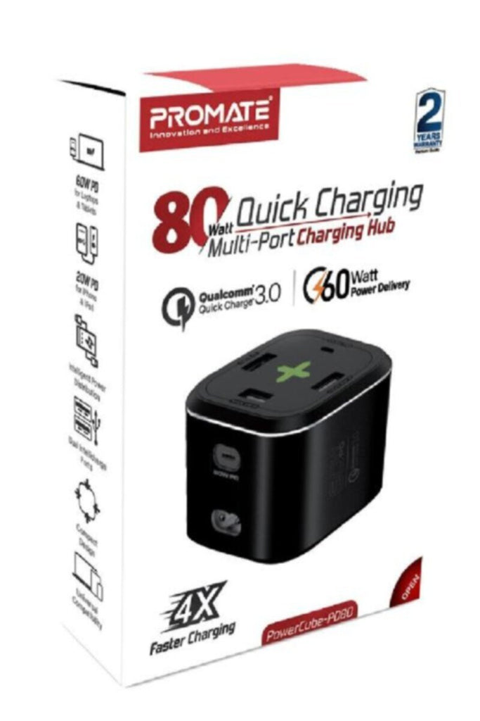 â—† Simultaneously charges a laptop and 4 other devices with optimum output, each of the Promate PowerCube-PD80 ports is powered by Smart IC (Intelligent Charging), which automatically identifies Apple, Android, and other devices