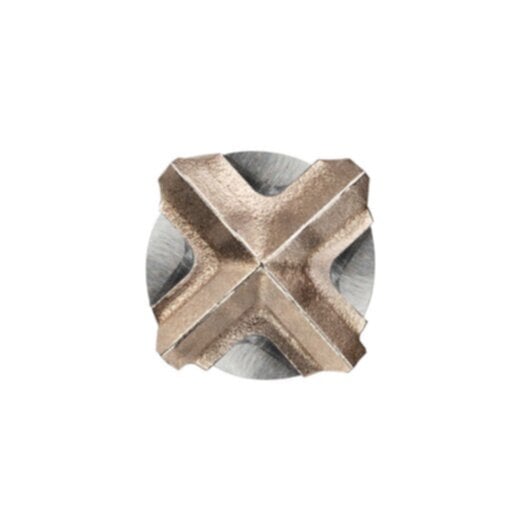 â—† Solid piece carbide tip with four cutting faces to prevent jamming in rebar, which also provides cleaner, more concentric holes and a constant high drilling speed