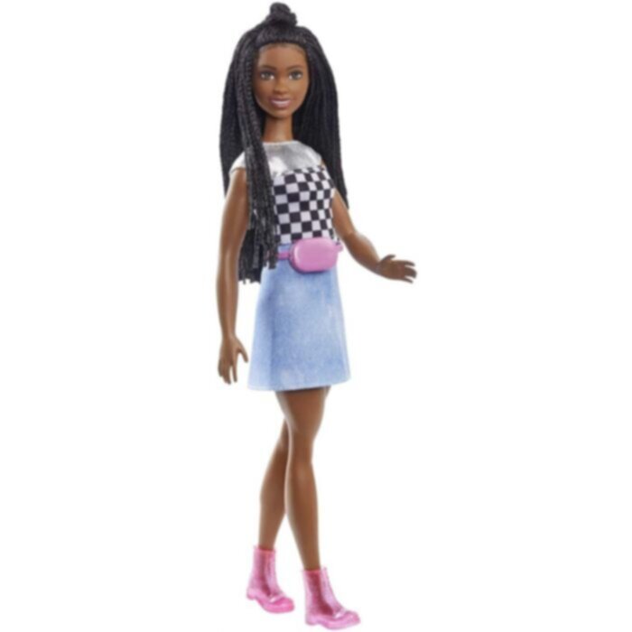 • تتضمن دمية باربي "بروكلين" روبرتس (11.5 بوصة / 29.21 سم) ترتدي بلوزة وتنورة وحذاء وحقيبة خصر.