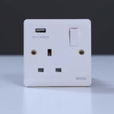 MILANO | 13A 1Gang Switched Socket, 2.1 A Usb Outlet | 210800600021