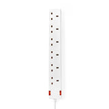 ◆ Type G | 6-Way | 3.00 m | 3120 W | 13 A | Kind of grounding: UK Plug Earth pin | 230 V AC 50/60 Hz | Socket angle: 90 ° | H05VV-F 3G1.5mm² | White.