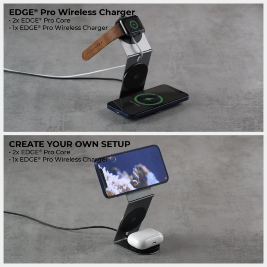 ◆ EDGE® Pro Ecosystem combines EDGE® Pro Core, a universal mount made to magnetically hold any phone and tablet, EDGE® Pro Light and the 15W EDGE® Pro Wireless Charger.