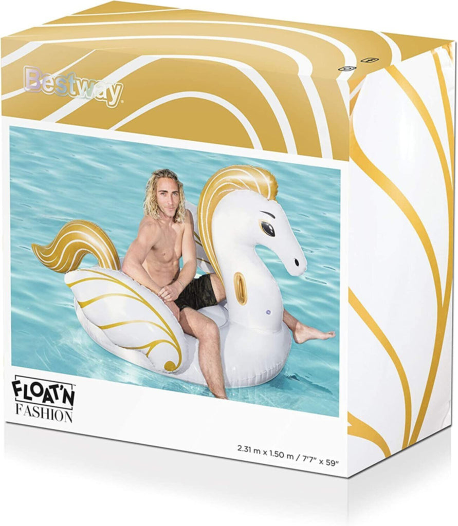 Have a magical day out on the water in the Bestway Luxury Pegasus! Not only does it have vibrant, multi-coloured graphics, but it also features a long neck and wings! This can double as something to hold on to or lean up against while enjoying your day at the pool, lake or beach. Bring the sunshine and rainbows to the next pool party with this majestic unicorn float!