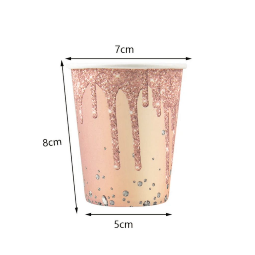 â—† 86pcs Pink Rose Gold Birthday Party, baby Shower, Bride to be Decoration Disposable Tableware 20 pcs Paper Plates 7 inch, 20 pcs Napkins,20 pcs Cups,25 pcs straws, 1 banner set