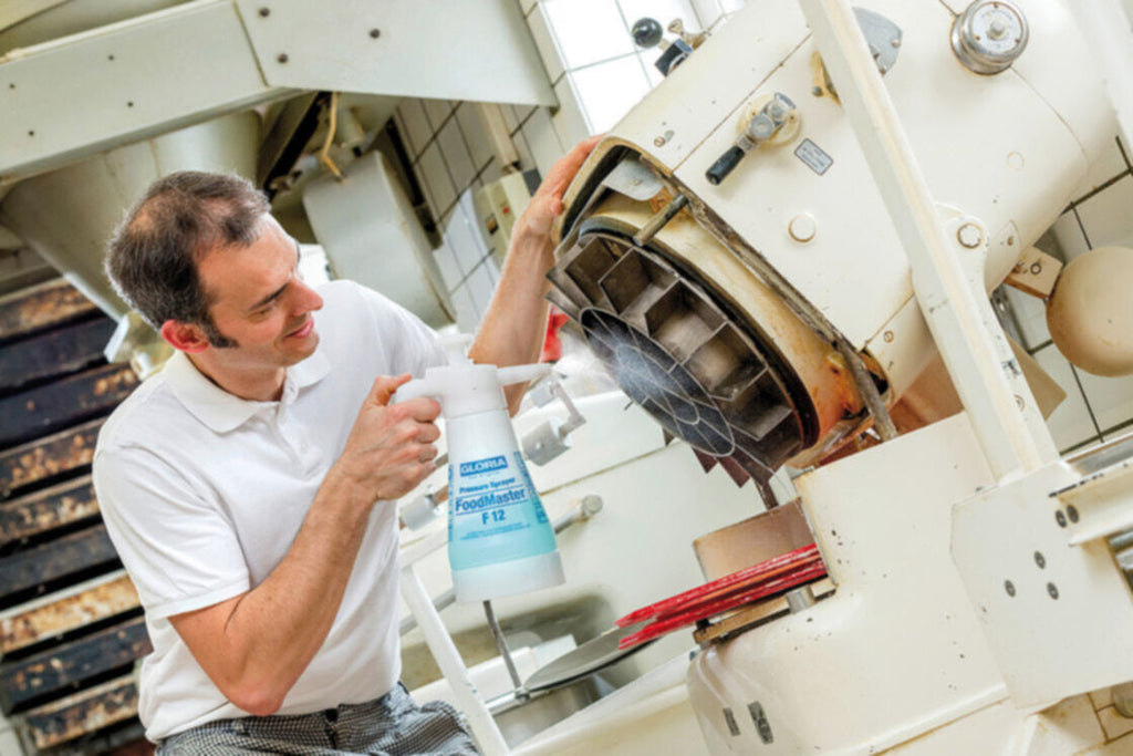 The hand sprayer FoodMaster F 12 is safe to use in companies that work with food every day. The special pressure sprayer has been tested and approved for the use in food processing companies by the Eurofins Food Testing GmbH, the world leading laboratory group for analytical services for the food and consumer goods industry. With a filling capacity of 1.25 litres and a maximum operating pressure of 3 bar, the F 12 is the ideal aid for disinfecting and cleaning production plants, canteen kitchens and cafeterias. Furthermore, the pressure sprayer is safe to use for the application of foods like greases and oils.