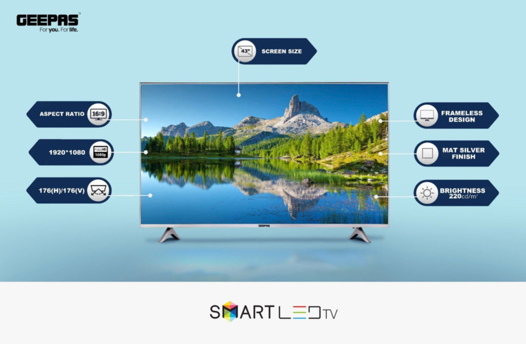 تلفزيون جيباس الذكي LED عالي الوضوح مقاس 43 بوصة / واي فاي / أندرويد 8.0 | GLED4328SXHD