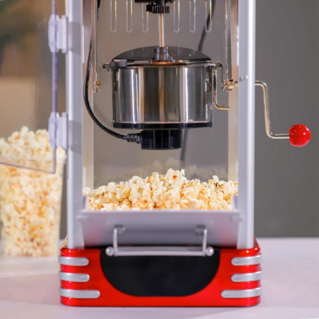This popcorn maker has a very simple mechanism and can be used to make delicious, fresh, and healthy homemade theater-style popcorn; it's appropriate for movie nights at home. With just a push of a ON/OFF button, you can sit back and enjoy fresh, homemade, healthy, low-calorie, oil-less, fat-free popcorn and have fun with a home theater
