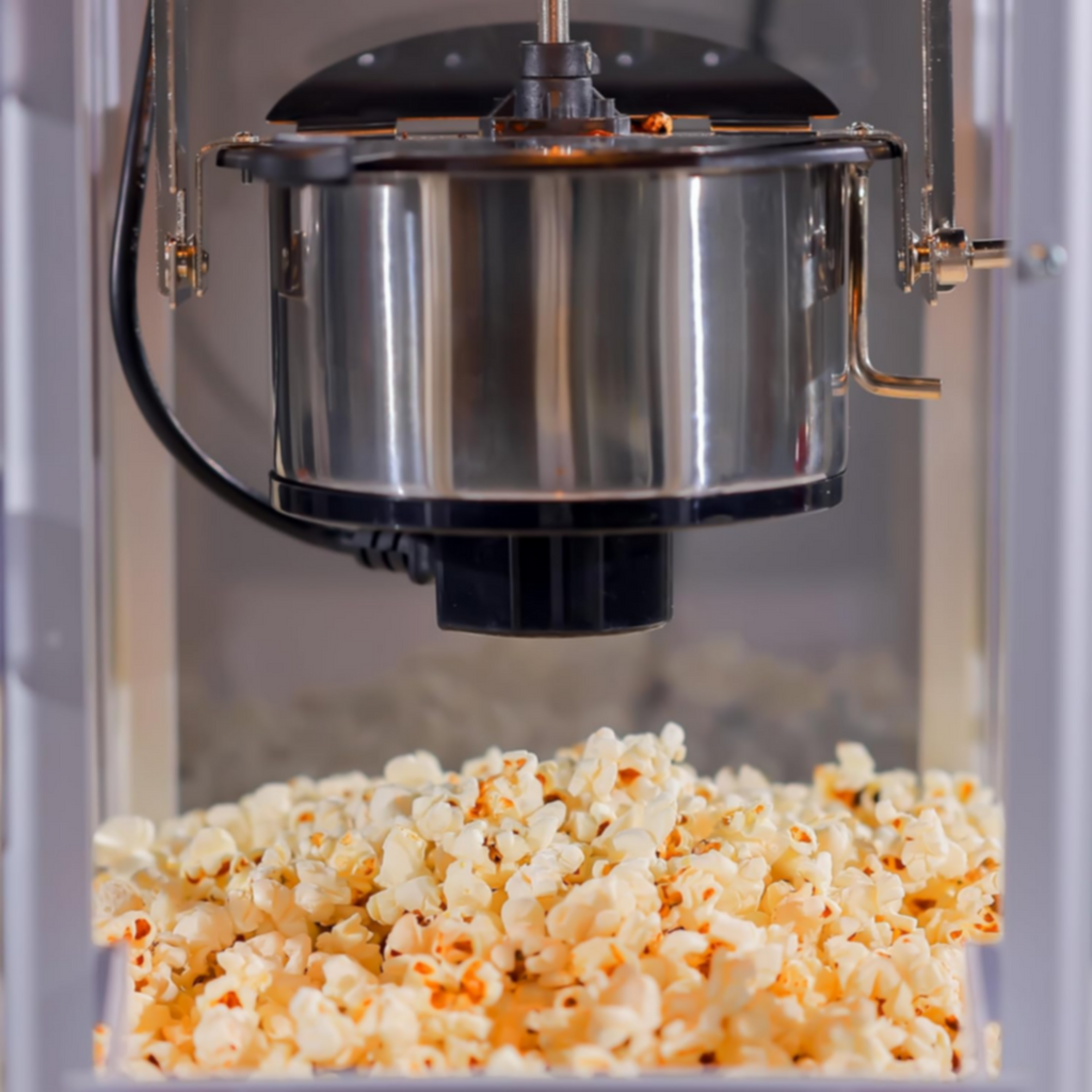 â—† ELEGANT DESIGN: This popcorn maker has a stylish and compact design. This flavored popcorn machine makes cleaning a breeze since no butter or oil is involved. This means all you need to do is wipe clean with a moist towel, and that's it.