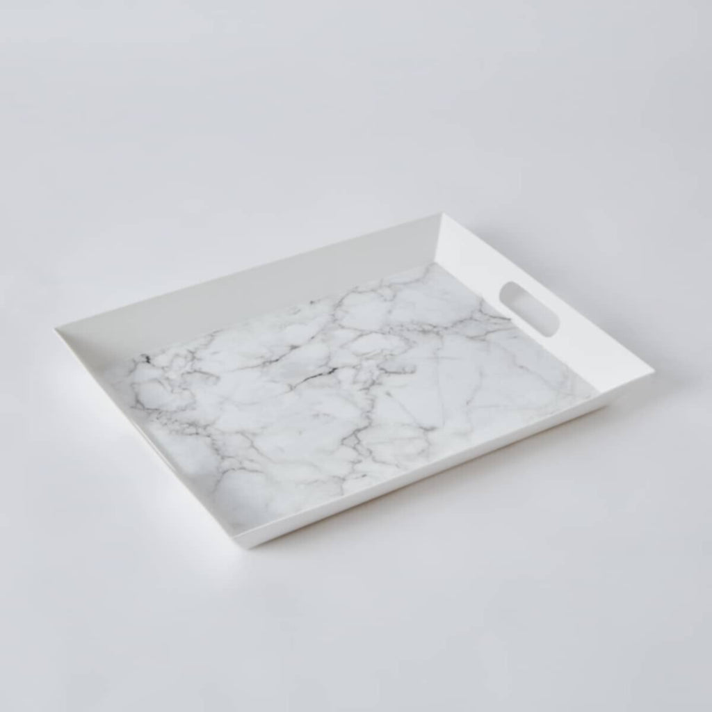 This square serving tray is perfect for serving food and drinks at your next party or gathering. It is made of durable, food-safe plastic that is suitable for both indoor and outdoor use. It also features a stylish patterned design that will add a touch of elegance to any table setting.The product images have props used for illustrative purposes.