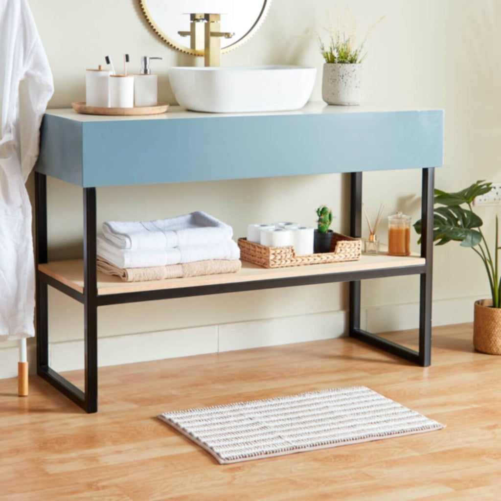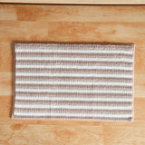 Spruce up the bathroom floor with this chic bathmat. It is accentuated by a striped surface design and lends a soft feel against the feet. It is well-crafted from colour-fast material and is foldable. This mat has easy maintenance and good durability. The product images have props used for illustrative purposes.