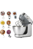 • يأتي الخلاط المنزلي الكبير من كينوود مزودًا بمفرمة لحم، وقطاعة خضار، وخلاط كبير، ومفرمة صغيرة.