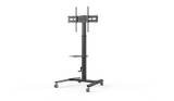 TV SCREEN SIZE 32â€- 70", UPTO 50KG WEIGHT CAPACITY, 90° ROTATION RANGE, ADJUSTABLE HEIGHT USING HANDLE, METAL SHELF, CASTOR WHEELS, BLACK COLOR, MADE IN CHINA