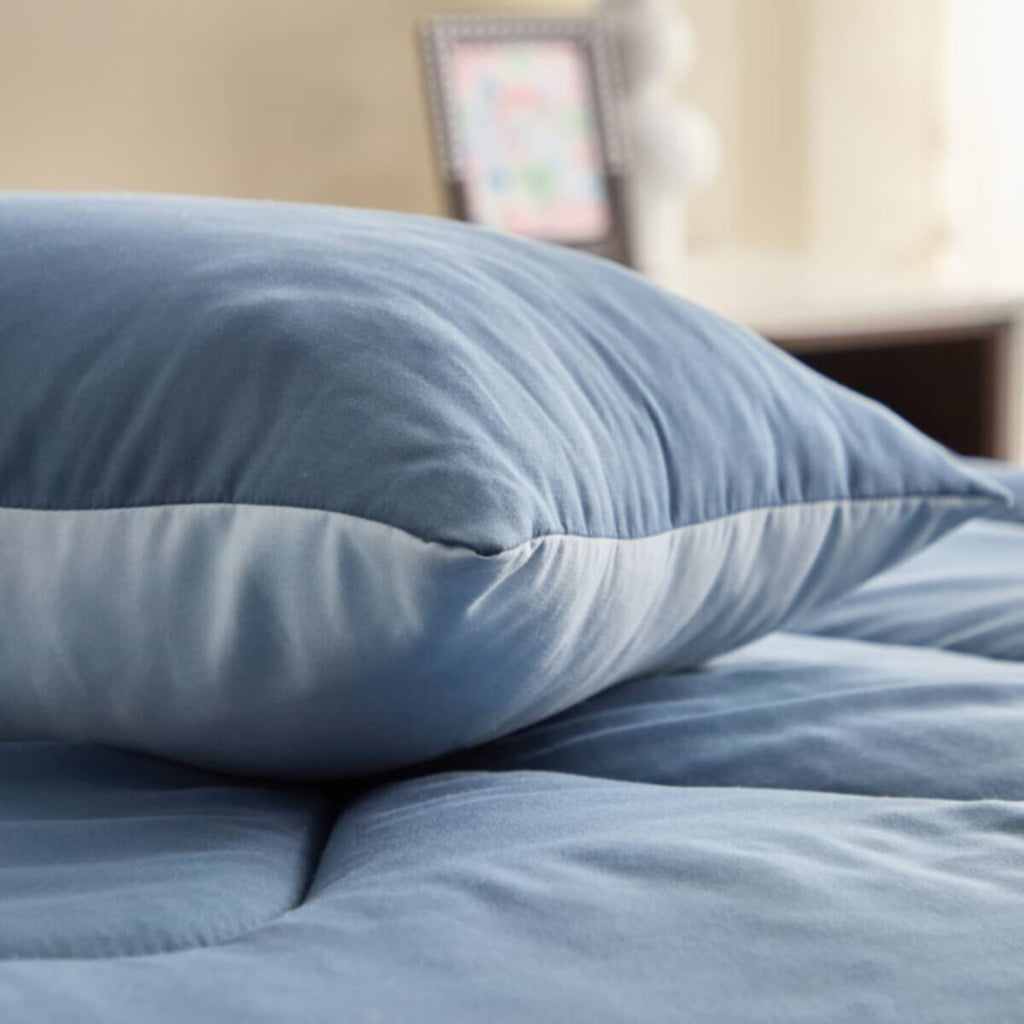 Enhance your child's sleep experience with this reversible pillow. Featuring a soft microfiber construction, this pillow offers a cozy and comfortable feel. Its reversible design allows you to switch up the look of your child's bedroom easily. The pillow comes in a set of one and is machine-washable for easy care.The product images have props used for illustrative purposes.