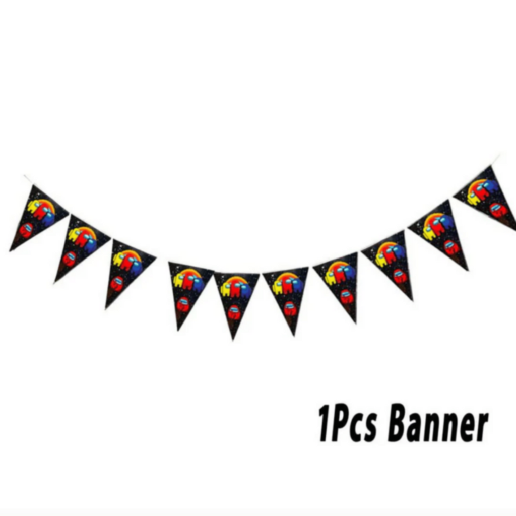 â—† 82 pcs Among Us Birthday Party Decoration 1 banner set, 20 pcs plates, 20 pcs cups, 20 pcs straws, 20 pcs Napkins set Decoration.