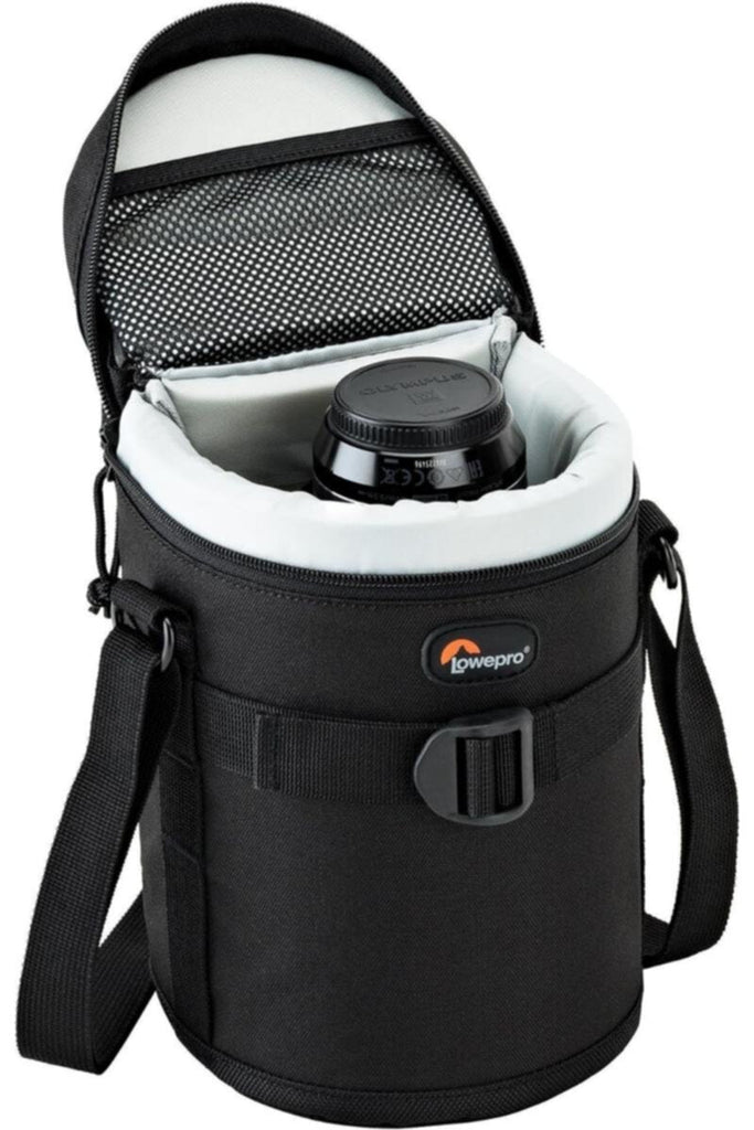 Made of tough polyester with one-piece foam padding, for an inspiring level of protection from shock and the elements, the black Long Zoom Lens Case 11x18cm by Lowepro is designed to store a longer zoom lens, such as an Olympus 4/3 40-150mm f/2.0. The case features an overlapping, zippered lid with dual fabric pulls to help keep out dust and moisture. Sewn-in attachment loops are useful for securing the case to a larger bag or pack with a carabiner. Underneath the lid is a mesh pocket for your lens cap, memory card, lens cloth, or other small accessory.