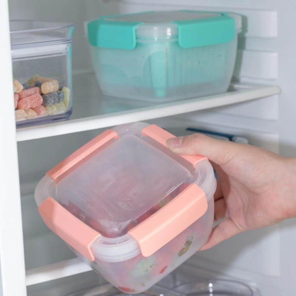 • تعليمات العناية: • غير سام وخالٍ من مادة BPA • استخدمها مع مصفاة لغسل الفاكهة أو الخضار • آمن للاستخدام في غسالة الأطباق • أقفال رباعية الجوانب لمنع التسرب