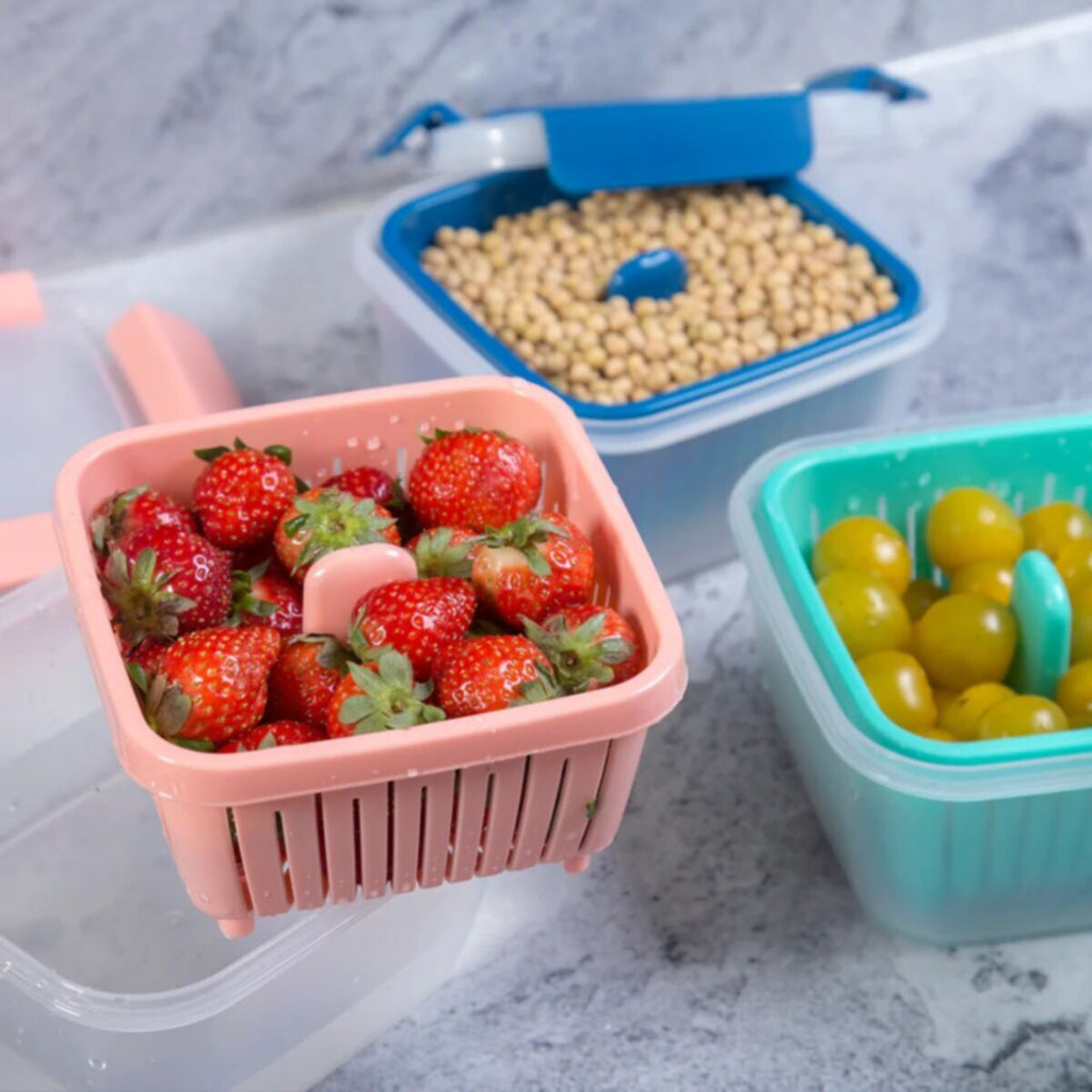 • طريقة عملية لحفظ جميع الفواكه والخضراوات في مكان واحد، يتميز هذا الوعاء المصنوع من مادة الرشح من شركة Vague بتصميم مربع الشكل ويأتي مصحوبًا بغطاء مزدوج محكم الإغلاق للحفاظ على الفواكه والخضراوات طازجة!