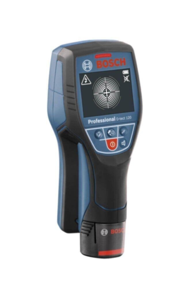 The Bosch DTECT 120 is a compact detector capable of detecting various materials including water-filled plastic pipes, ferrous metals, non-ferrous metals, wooden studs, and live cables. Perfect for finding or avoiding objects when drilling. Compatible with all Bosch Professional 10.8v/12v lithium-ion batteries which can be purchased separately for increased run time. This package comes with an AA battery adaptor and 4x AA batteries, as well as a 1/2 inlay for L-Boxx 136, carry cases.