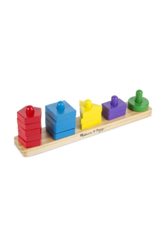 The 15 wooden pieces in this first-manipulatives set offer a variety of colors, shapes and opportunities for leaning. A printed key on the wooden base offers guidance when it's wanted, but the possibilities for play are endless. Use these colorful blocks to encourage matching, counting, stacking, dexterity, fine motor skills, color recognition and more.