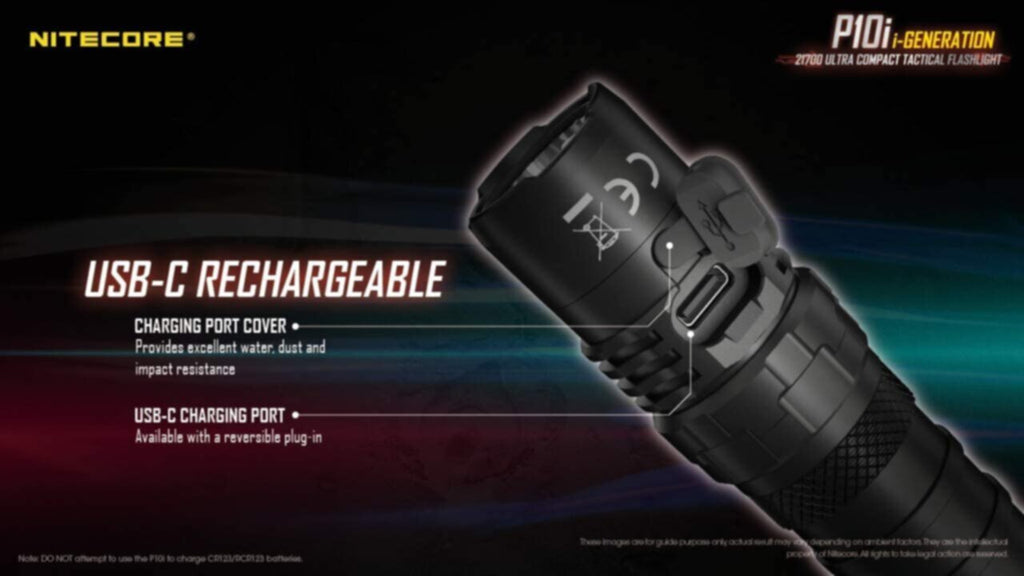 • مصباح تكتيكي عالي الأداء: يُصدر مصباح Nitecore P10i ما يصل إلى 1800 لومن بمدى أقصى يبلغ 317 ياردة. صُمم هذا المصباح خصيصًا لرجال إنفاذ القانون والعسكريين، وهو سهل الاستخدام بثلاثة مستويات سطوع وخاصية الوميض. • وضع الوميض: اضغط مع الاستمرار على زر الوضع الموجود في الجزء الخلفي لتفعيل وضع الوميض في أي وقت. تُسبب أنماط الوميض غير الخطية تأثيرات دوار مُعززة، وهي فعّالة للغاية في تهدئة المواقف المتوترة. • منفذ USB-C قابل للشحن: تتيح بطارية 21700i المطورة كفاءة أعلى في الإخراج وتقلل من فقد الطاقة، لمدة 90 دقيقة على أعلى مستوى ووقت تشغيل أقصى يصل إلى 38 ساعة على أدنى مستوى. أعد شحن جهاز P10i عبر منفذ USB-C للشحن السريع. • جاهز للاستخدام: بفضل تصنيف IP68 لمقاومة الماء والصدمات، فإن مسدس P10i جاهز للعمليات التكتيكية عالية الكثافة. يتضمن المسدس جرابًا تكتيكيًا NTH10 متوافقًا مع أحزمة الشرطة القياسية وأنظمة MOLLE. • حزمة طاقة P10i: تتضمن هذه الحزمة بطارية Nitecore P10i، وبطارية NL2140i، وشاحن بطارية CR123، وحافظة NTH10، وكابل شحن USB-C، وحبل تعليق، ومشبك، وحلقة O بديلة، وحافظة بطارية LumenTac.