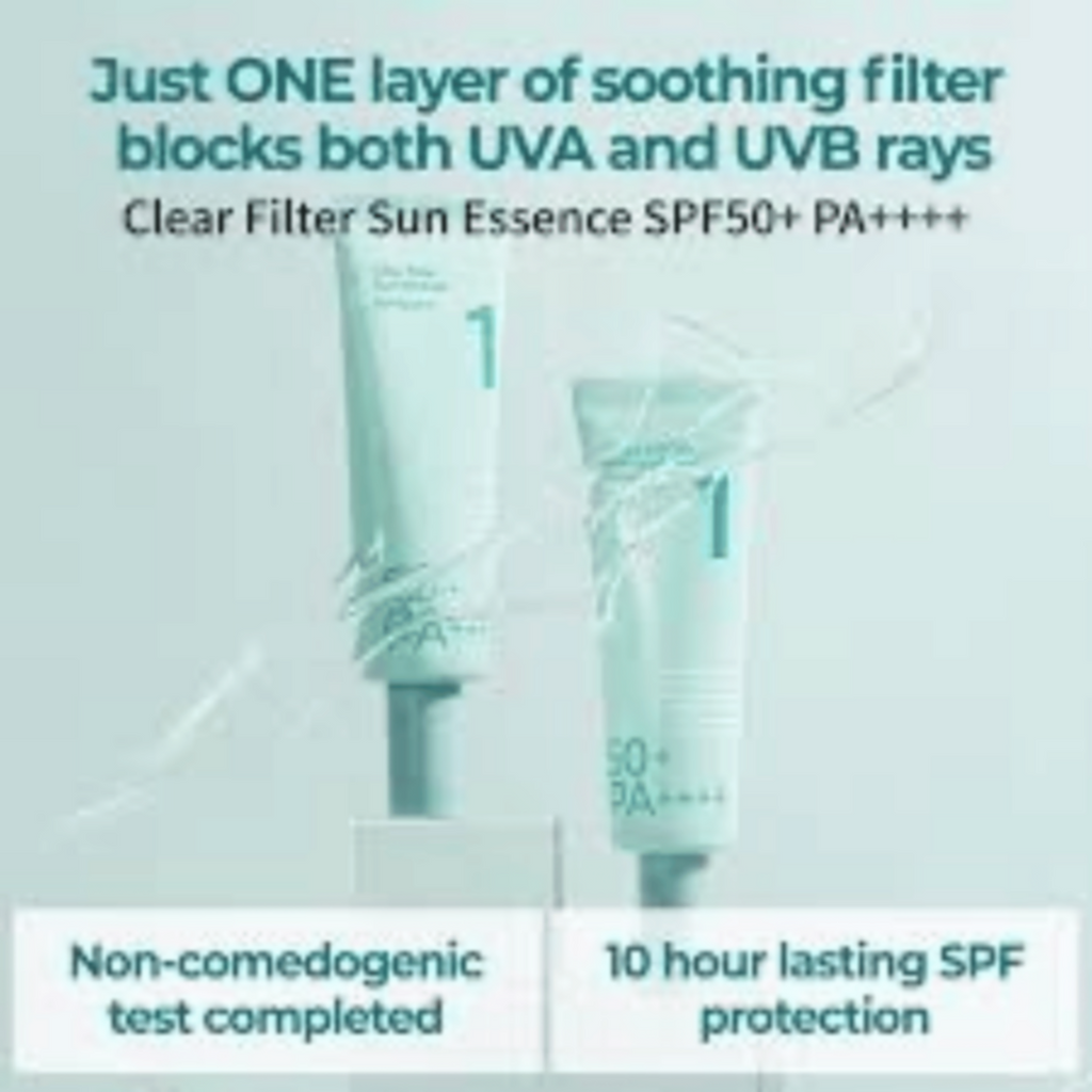 Introducing Numbuzin No.1 Clear Filter Sun Essence SPF50+ PA++++, a chemical sunscreen that offers unparalleled SPF50+ PA++++ protection, ensuring your skin stays shielded from UV damage.