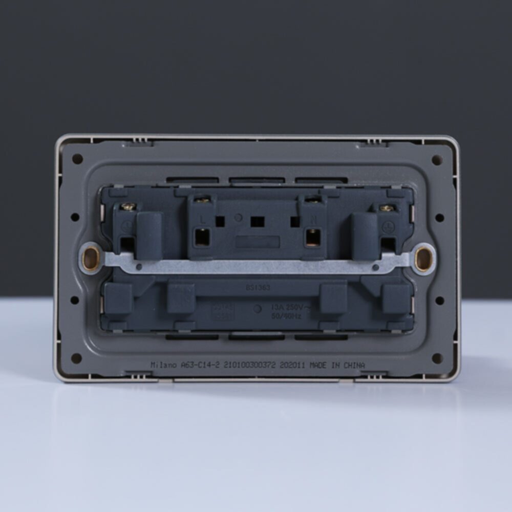 MILANO | 13A Twin Socket With Switch & Led Indicator-Silver | 210100300372