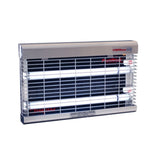 Dimensions H: 31.5cm W: 48.5cm D: 6.5cm Weight • 4.3Kg Coverage • Wall mounted / Freestanding: 90m2 Finish • White • Stainless Steel Tube Data • 2 x 15-Watt PestWest Quantum® tubes • Shatterproof coating with industry compliant FEP • Reflectobakt® technology