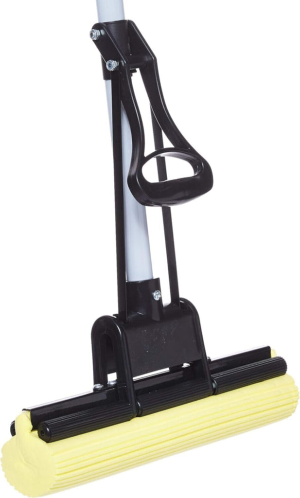 ◆ EASY TO USE – Soak a sponge in warm water for 10 minutes or more until the sponge is completely wet and soft throughout before each use. The hand-operated lever provides effortless wringing and keeps your hands free of dirt and water. Pull lever upward and toward the pole to extract dirt and water out of the sponge. Easy assembly is required of the handle. Simply attach the pole extension pieces to the mop head. To replace the mop head, unscrew the four screws and replace.