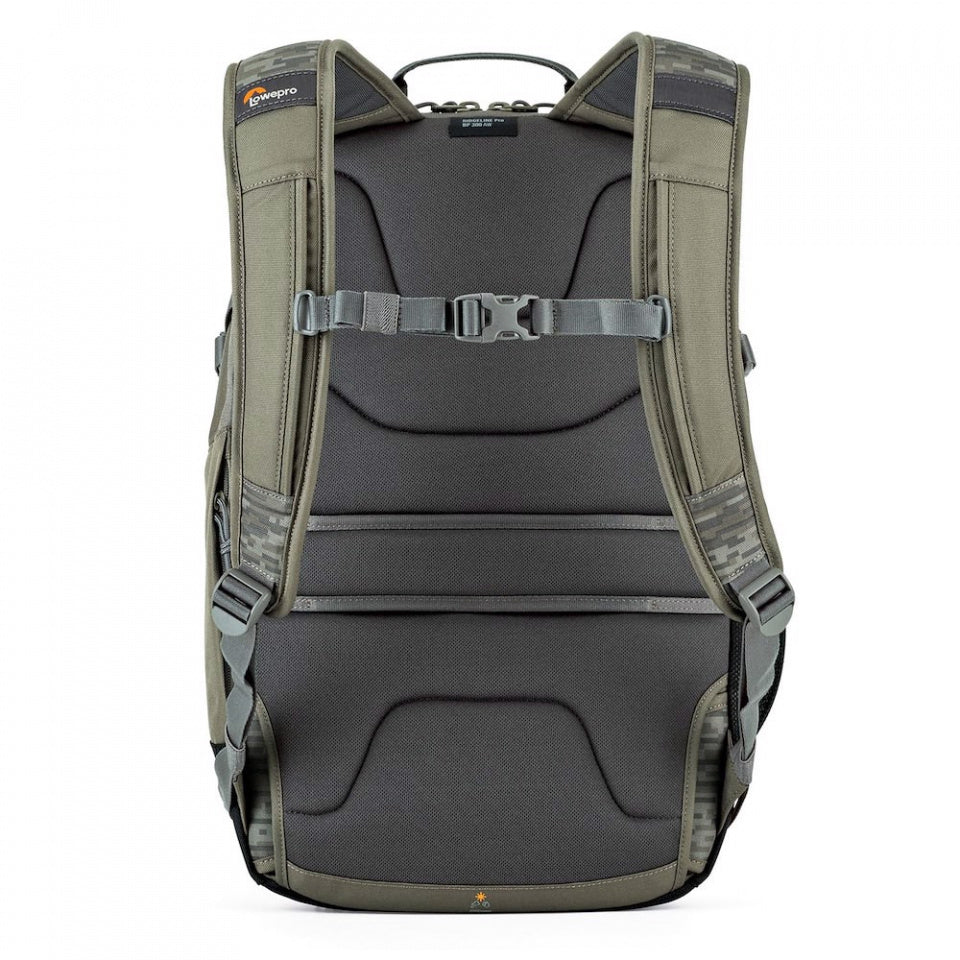 The Lowepro RidgeLine Pro BP 300 AW in Mica and Pixel Camo is a 25-liter daypack designed for outdoor enthusiasts and commuters seeking a balance between protection, organization, and comfort.