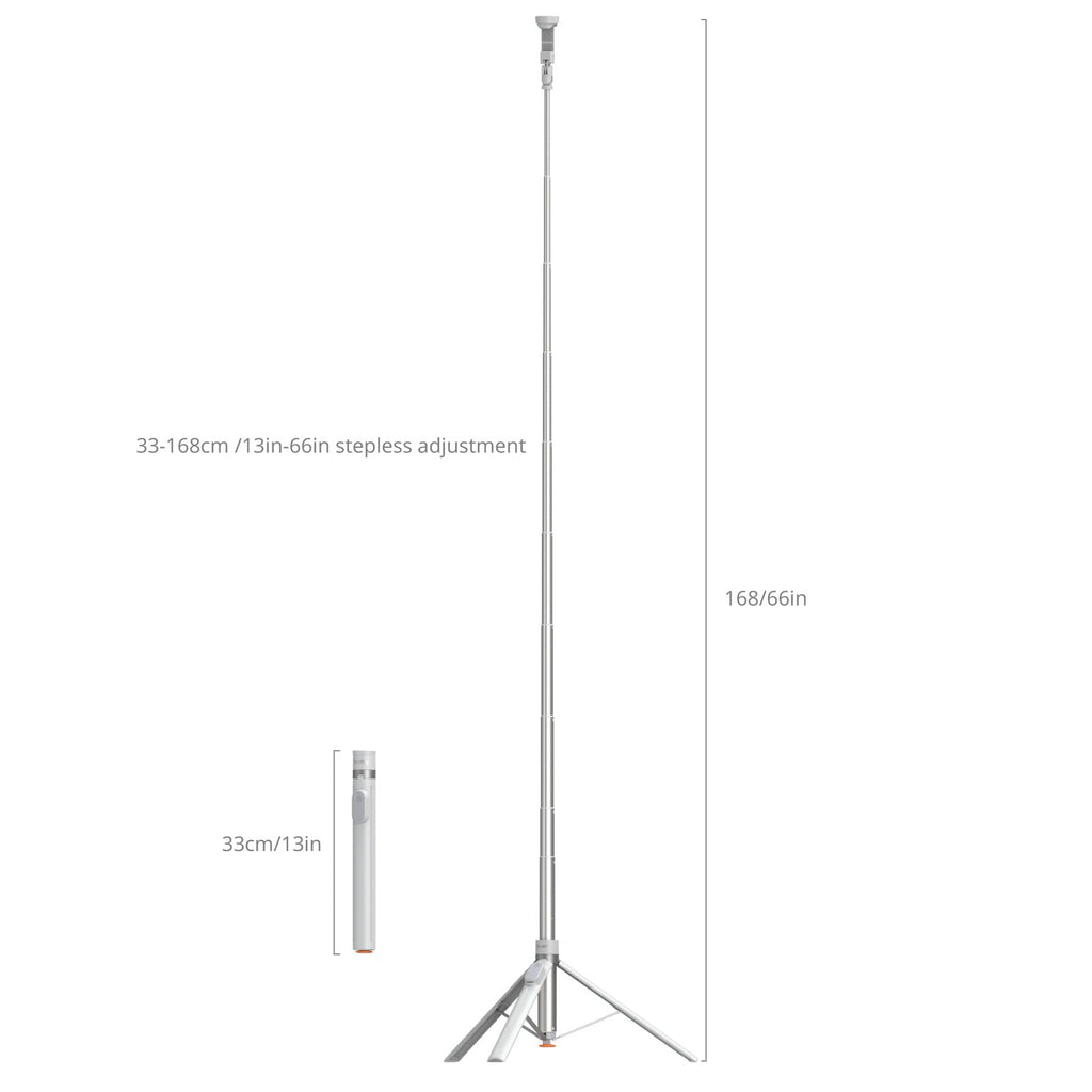 â—† 66'' Telescopic Pole: Seamlessly adjust heights from 33 to 168cm (13.0 to 66.1in) for versatile shooting scenarios in any setting, elevating your creativity with adjustable heights that enable capturing stunning shots from various perspectives effortlessly.