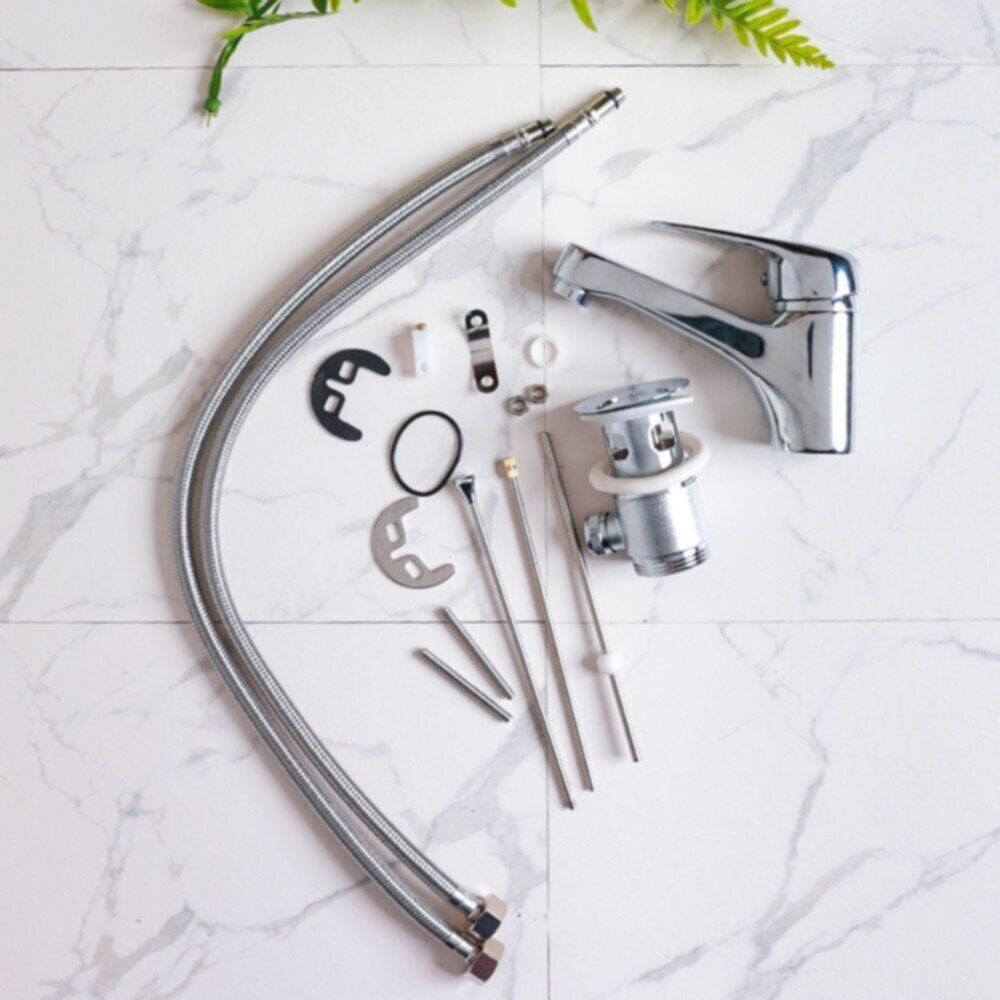 Item included : 1 Faucet, 1 Pop Up Waste, 2 Flexible Hose Pipes (60 cm, 1/2")