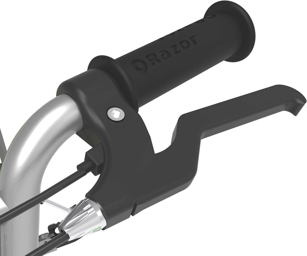 ◆ Features adjustable-angle, riser-style handlebars, spoked wheels with 12″ pneumatic, knobby tires, retractable kickstand, and hand-operated rear brake